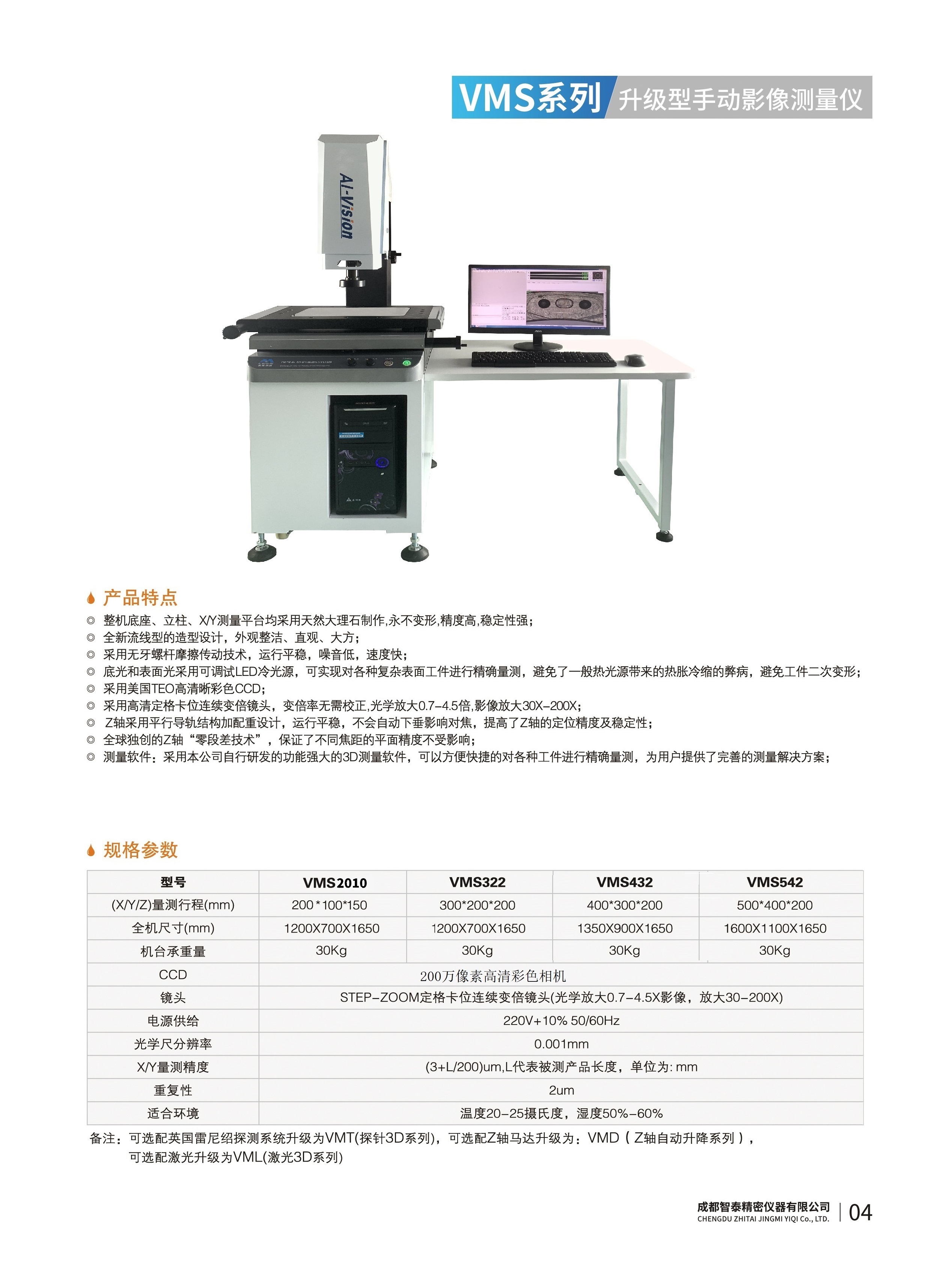 成都智泰精密儀器有限公司專注于精密測量儀器,人工智能,智能制造領(lǐng)域,專業(yè)從事智能視覺自動化檢測解決方案的貿(mào)易型企業(yè)。公司成立于2011年,位于天府之國成都,現(xiàn)有行業(yè)精英十余人,辦公倉儲面積200余平米。 公司主要產(chǎn)品為精密光學(xué)影像測量儀,精密輪廓形狀測量儀,精密機(jī)器人定位系統(tǒng),精密智能視覺尺寸檢測儀器,精密表面缺陷智能檢測設(shè)備,工業(yè)工程特種機(jī)器人。 公司憑借過硬的技術(shù)實(shí)力和產(chǎn)品方案,率先進(jìn)入智能視覺自動化檢測領(lǐng)域,推廣以精密智能視覺自動化檢測為基礎(chǔ)的機(jī)器人自動化應(yīng)用,公司不斷整合上下游的資源,擁有巨大的全產(chǎn)業(yè)鏈優(yōu)勢??蛻羧后w覆蓋了我國精密制造業(yè)的多數(shù)領(lǐng)域,包括航空、航天、軍工、汽車、新能源、光伏、食品,精密電子、精密機(jī)械、模具、PCB、LCD、五金、塑膠、醫(yī)療、教育、計量及科研院所等行業(yè)。 公司創(chuàng)新的產(chǎn)品能滿足生產(chǎn)與制造行業(yè)客戶的要求,訓(xùn)練有素的工程師能及時提供多種技術(shù)服務(wù),如解...